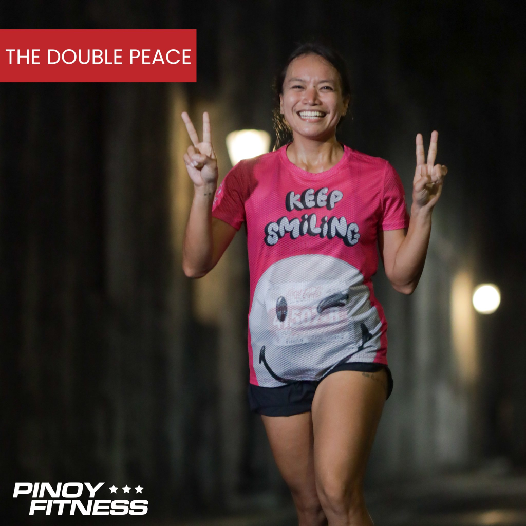 The Peace Sign – “Wind in her hair, peace sign in the air, this runner’s vibe is infectious. It’s not just about the miles; it’s about the peace-filled smiles!”